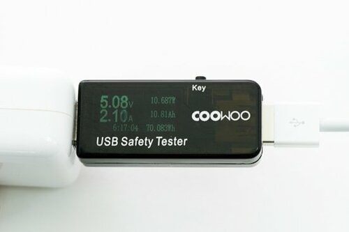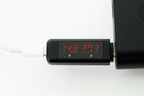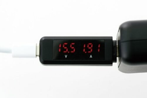 まずは、電圧チェッカーを使用し、電圧数値を確認。その後、実際にバッテリー0%の状態から100%になるまでの時間を計測しました。