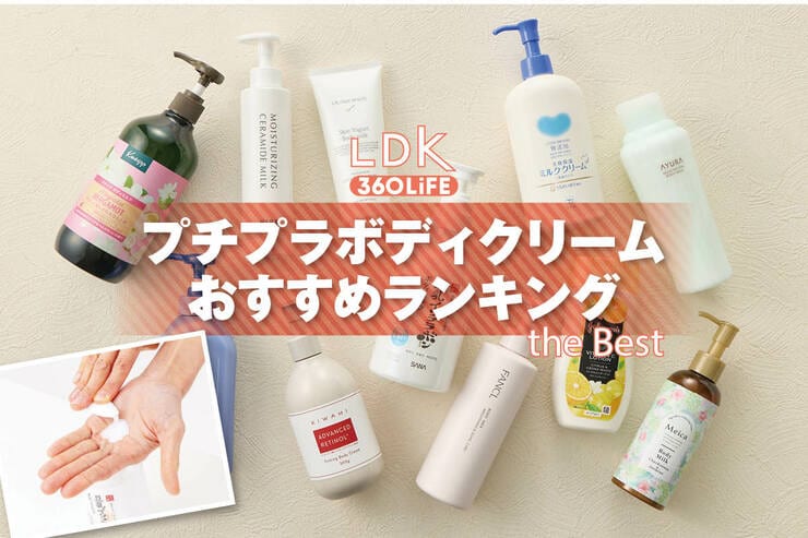 プロと雑誌『LDK』編集部が実際に比較検証してわかった、プチプラボディクリームのおすすめランキングです。ベストバイ1位はラクティックボーテ「スキンヨーグルト ボディミルク(無香料)」、ベストバイ2位はなめらか本舗「もちすべボディミルク NC」、3位はKIWAMI「RTボディクリーム」でした。以下は、保湿力・成分・使用感などを比べた当サイト独自の結果です。