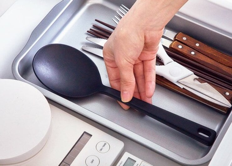 さらに、無印の調理スプーンは一般的なお玉などより寸法が4~5cmほど短いため、引き出しの中に入れてもジャマにならず収納のしやすさもバツグンです。