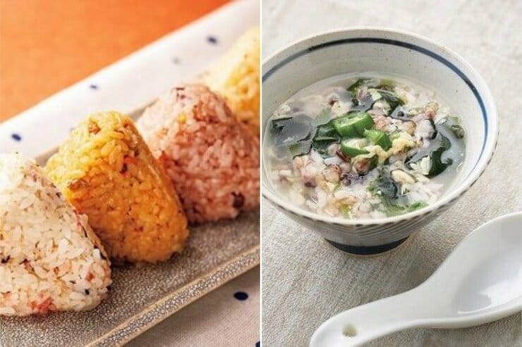 - 1:梅ひじきのおこわおにぎり……ごまの風味と爽やかな梅の酸味がマッチ。